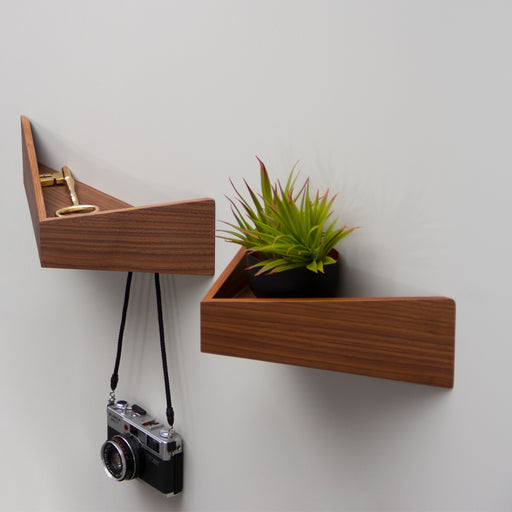 Sæt af 2 stk. på længde 44 og 56 cm To stilrene og funktionelle træhylder med minimalistiske linjer og skjulte kroge nedenunder. Sæt pynt på hylder...