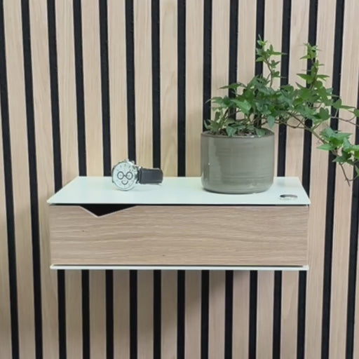 Wand-Nachttisch: 2 Stk. - BESIDE - weiß mit Schublade aus Eichenholz