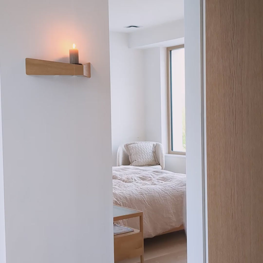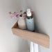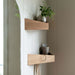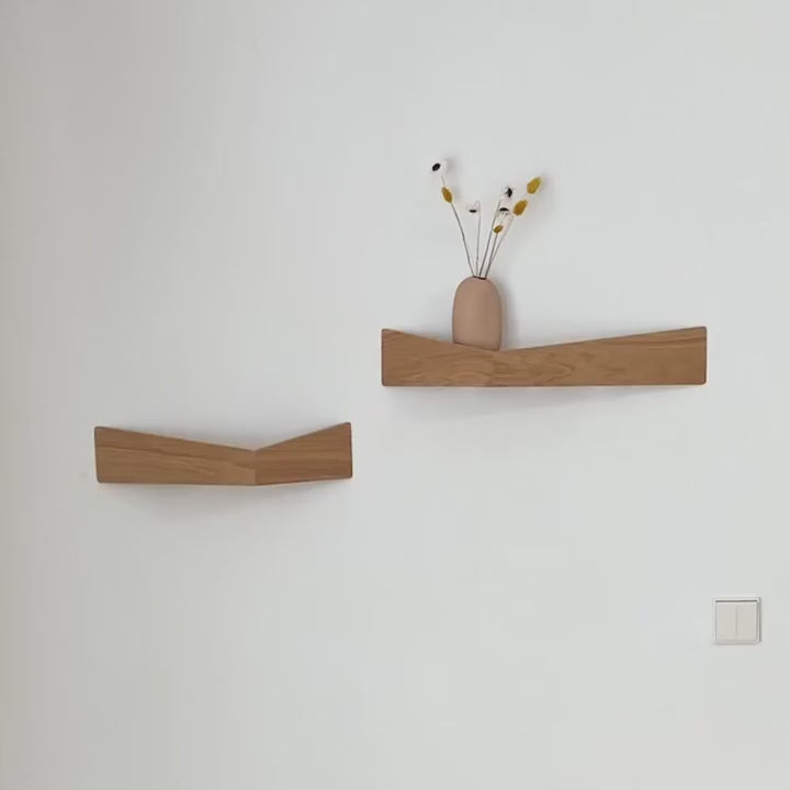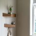 To stilrene og funktionelle træhylder med minimalistiske linjer og skjulte kroge nedenunder. Sæt pynt på hylderne og anvend de skjulte kroge til tøj, håndklæder, tasker, nøgler eller måske hovedtelefoner.